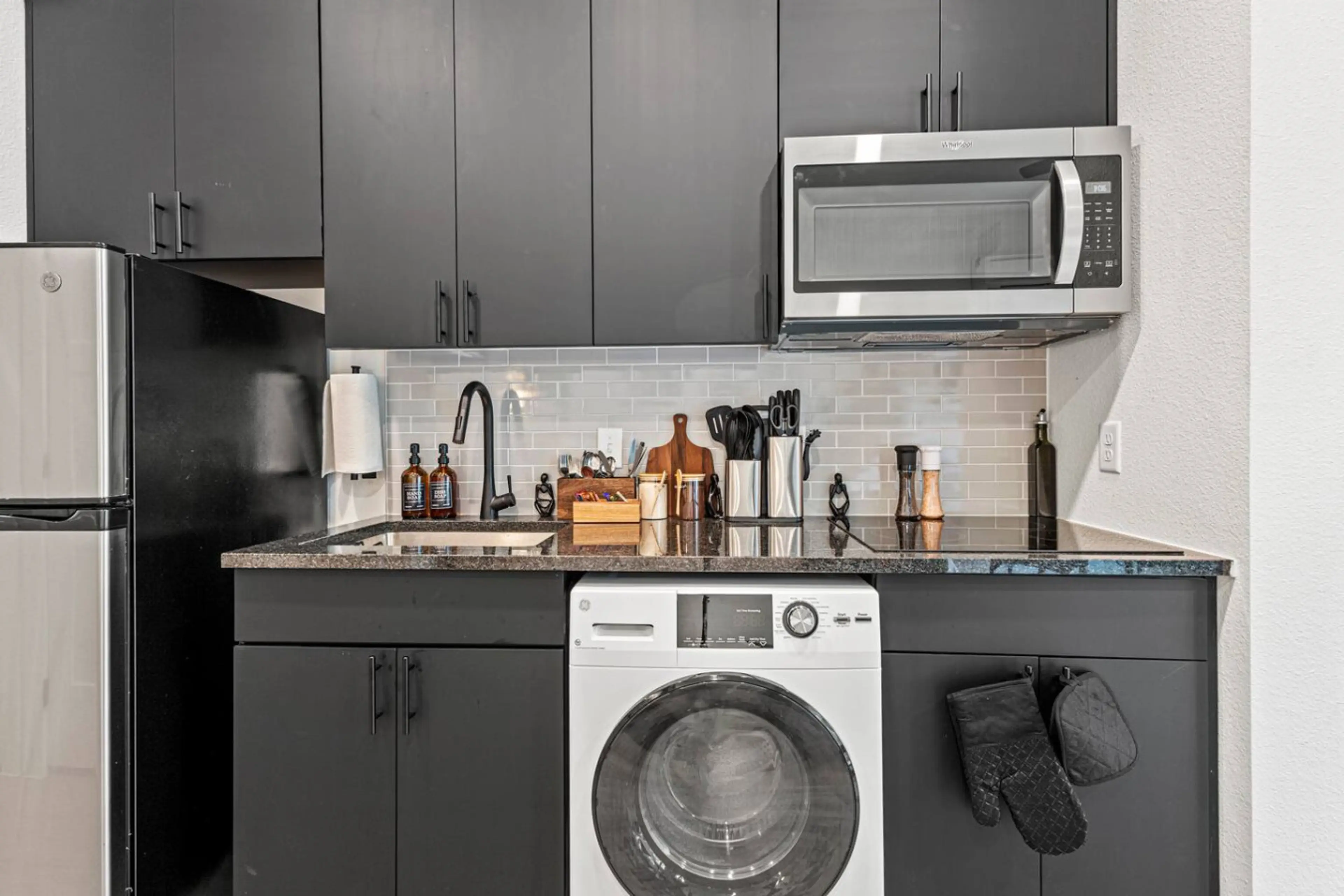 โจ Cozy boho suite just steps from Bishop Arts! Newly furnished with a queen bed, sofa sleeper, smart TV, fully equipped kitchen, and in-suite washer/dryer. A comfortable, modern escape. โจ ๐ผ Building highlights: fitness center, yoga & wellness space, coworking, podcast, and gaming room. Ideal for b...