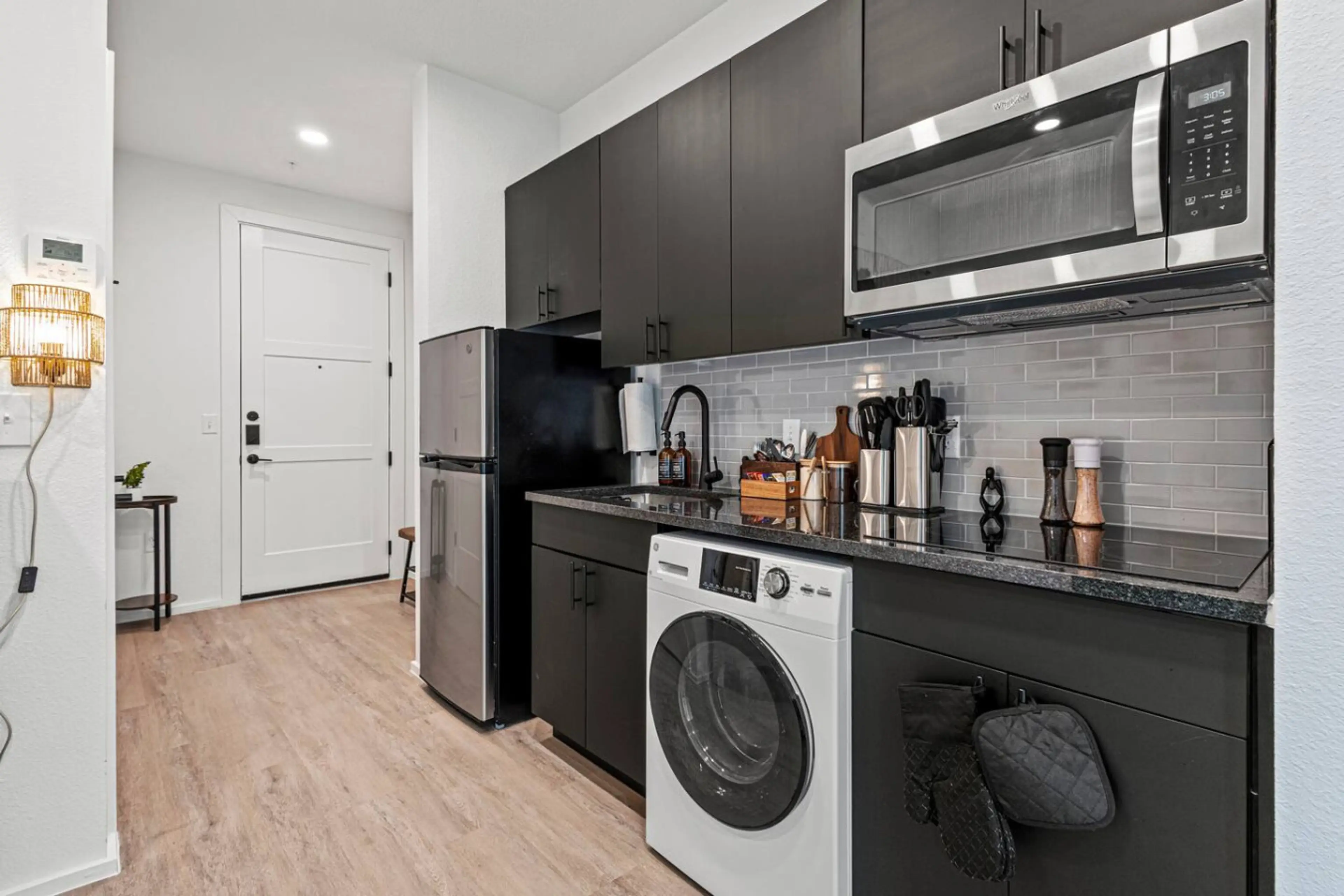 โจ Experience Dallas in a modern boho suite just 3 blocks from Bishop Arts. Relax with a queen bed, sofa sleeper, smart TV, stocked kitchen, and washer/dryer. A cozy retreat in a quiet yet central spot. โจ ๐ผ The building is highly amenitized with a fitness center, yoga & wellness studio, coworking s...