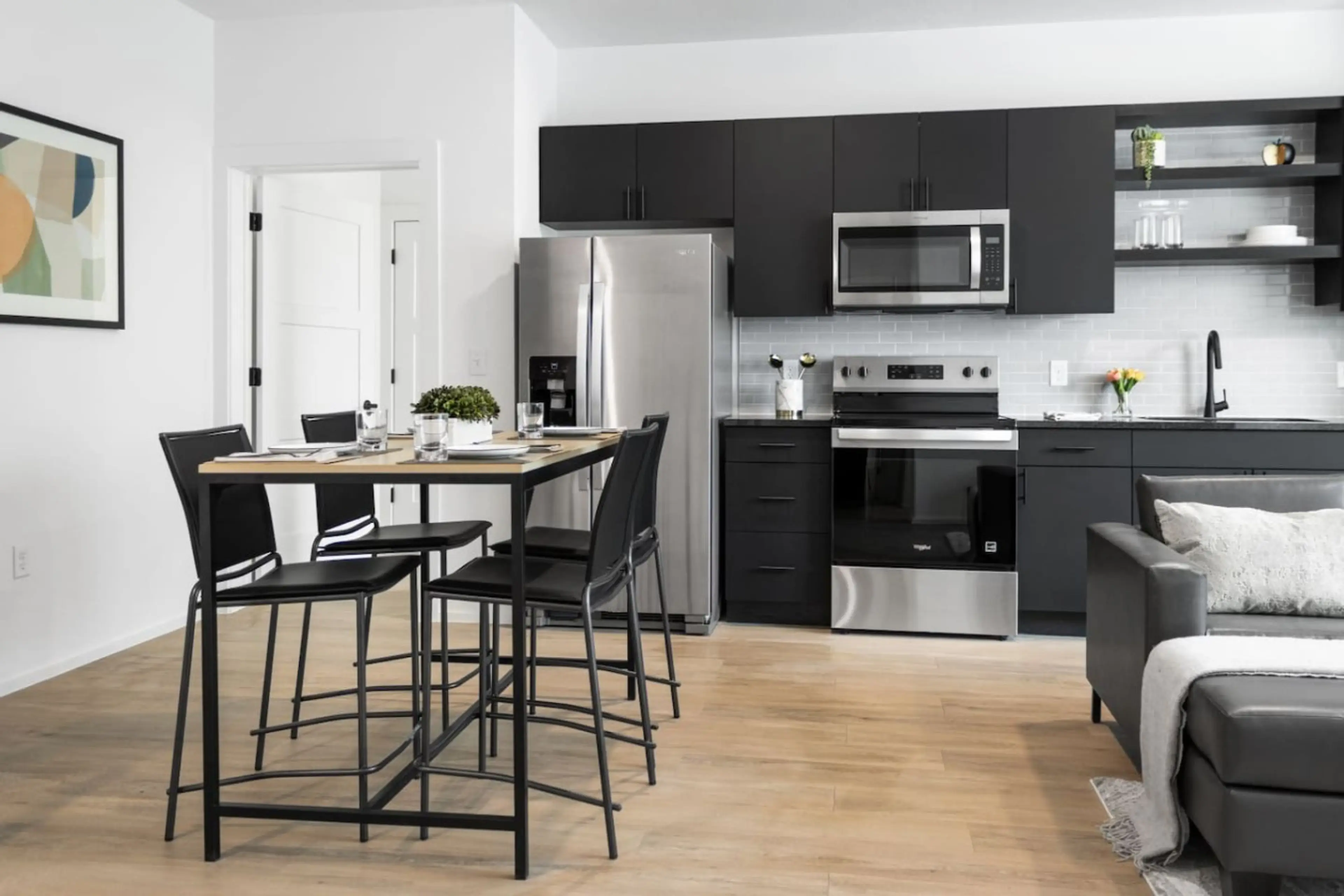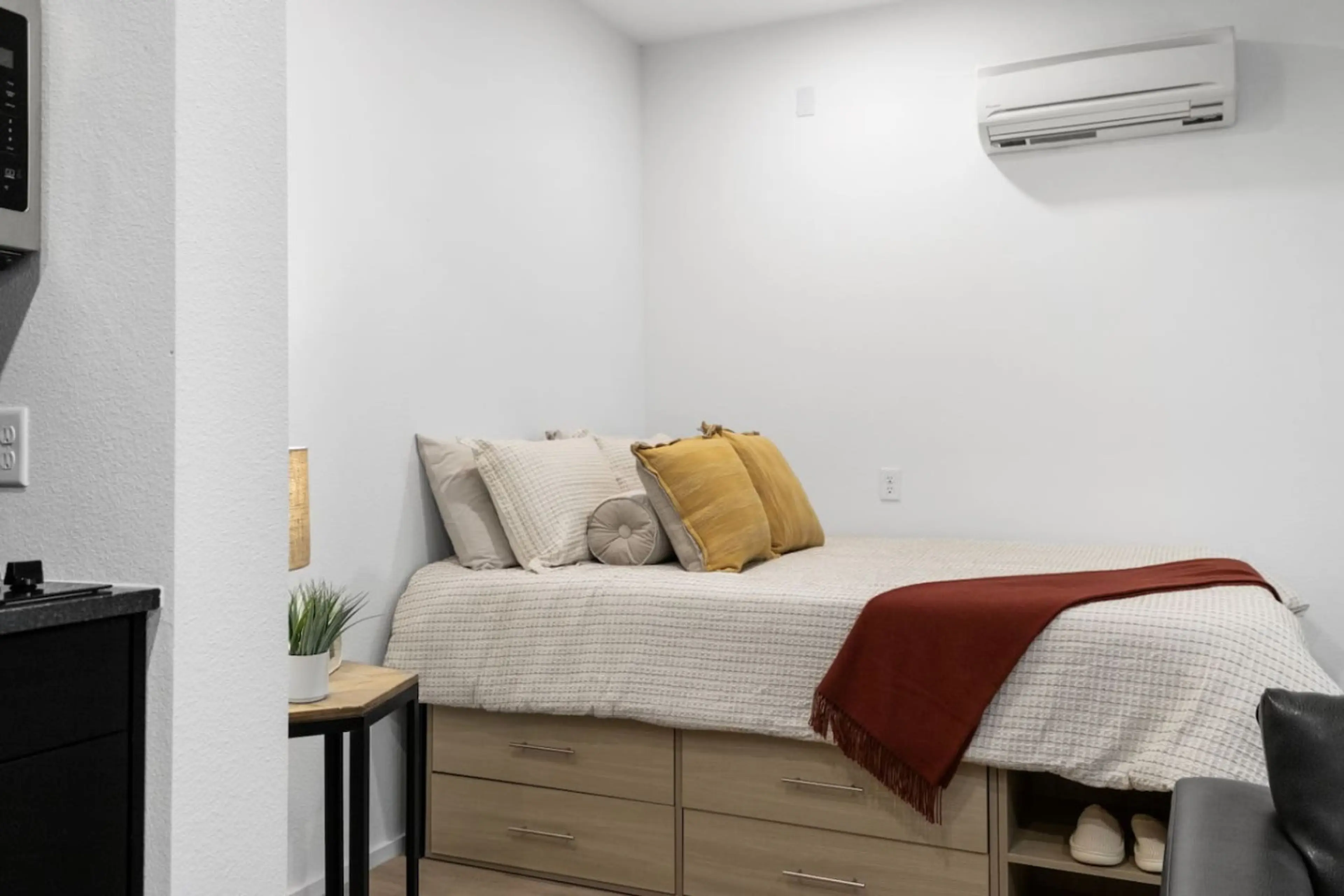 Stylish suite built for comfort and ease! This modern stay features one king bed and two queen beds, plus a sofa bed, Smart TV, full kitchen, and in-unit washer/dryer. Enjoy access to a fitness center, yoga studio, coworking space, podcast room, and game lounge. Unwind on the rooftop, grill at the B...